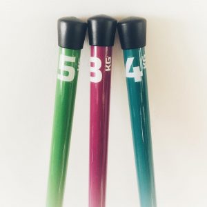 „Bodybars“ = „Gewichtsstangen gibt es von sehr leicht (1 kg) bis 8 kg. Letzteres entspricht dann schon einer leeren Langhantelstange eines Schraub- oder Clip-Hantelsystems. Bodybars sind leicht zu verstauen und nicht sehr teuer.