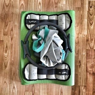 Pilatesring, auch immer wieder die sehr guten Pilatesringe von Eduscho. Den Pilatesring verwende ich oft zusätzlich zum klassischen Equipment, man kann ihn aber leicht ersetzen, siehe Erklärungsvideos.